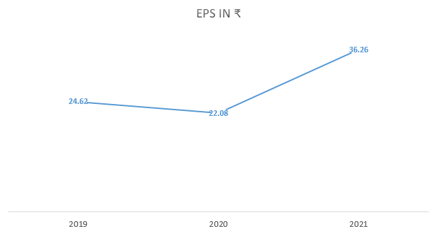 Company's Revenue is decreasing but Net Profit and EPS are increasing year on year. There is not growth in topline. With EPS of 36.26, the company's P/E is 24.8.